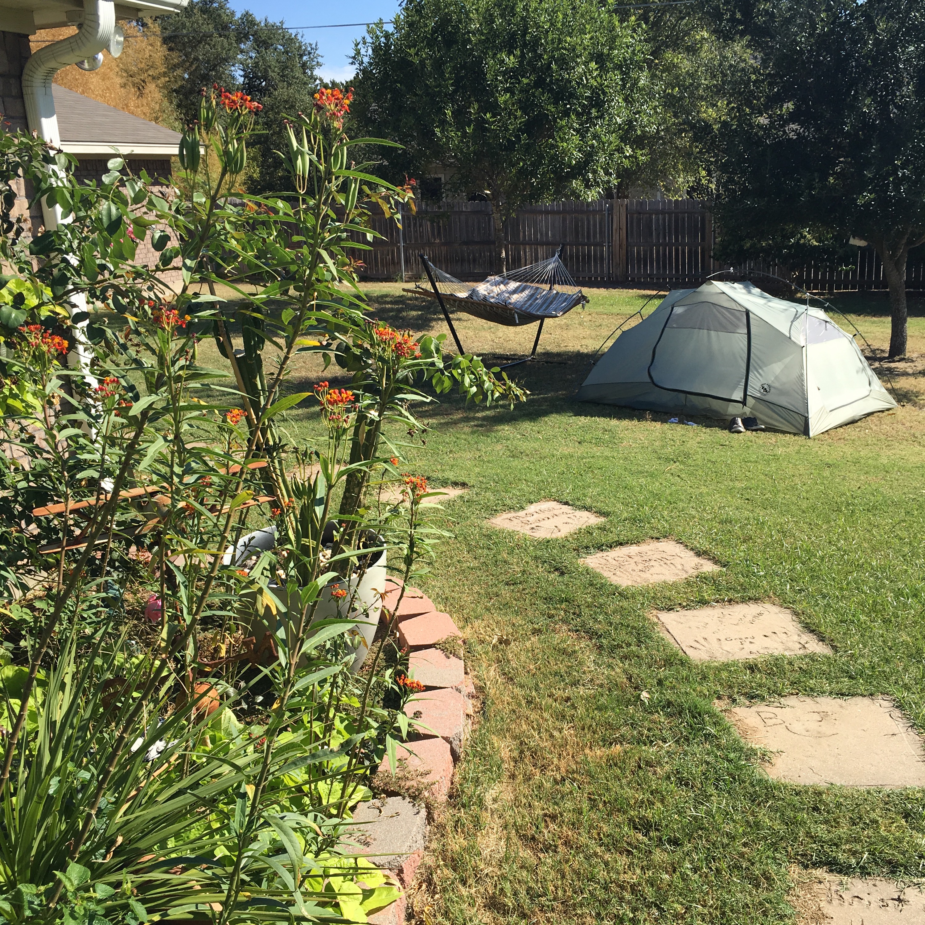 We have been sleeping outside this week, getting used to sleeping on the tiny air mattresses on the ground that have to be blown up nightly. Matt wants an automatic pump so he refuses and now I get to do it. “Let’s not carry so many gadgets!” I said. I guess it’s not too late to take that back? T minus 34 days.